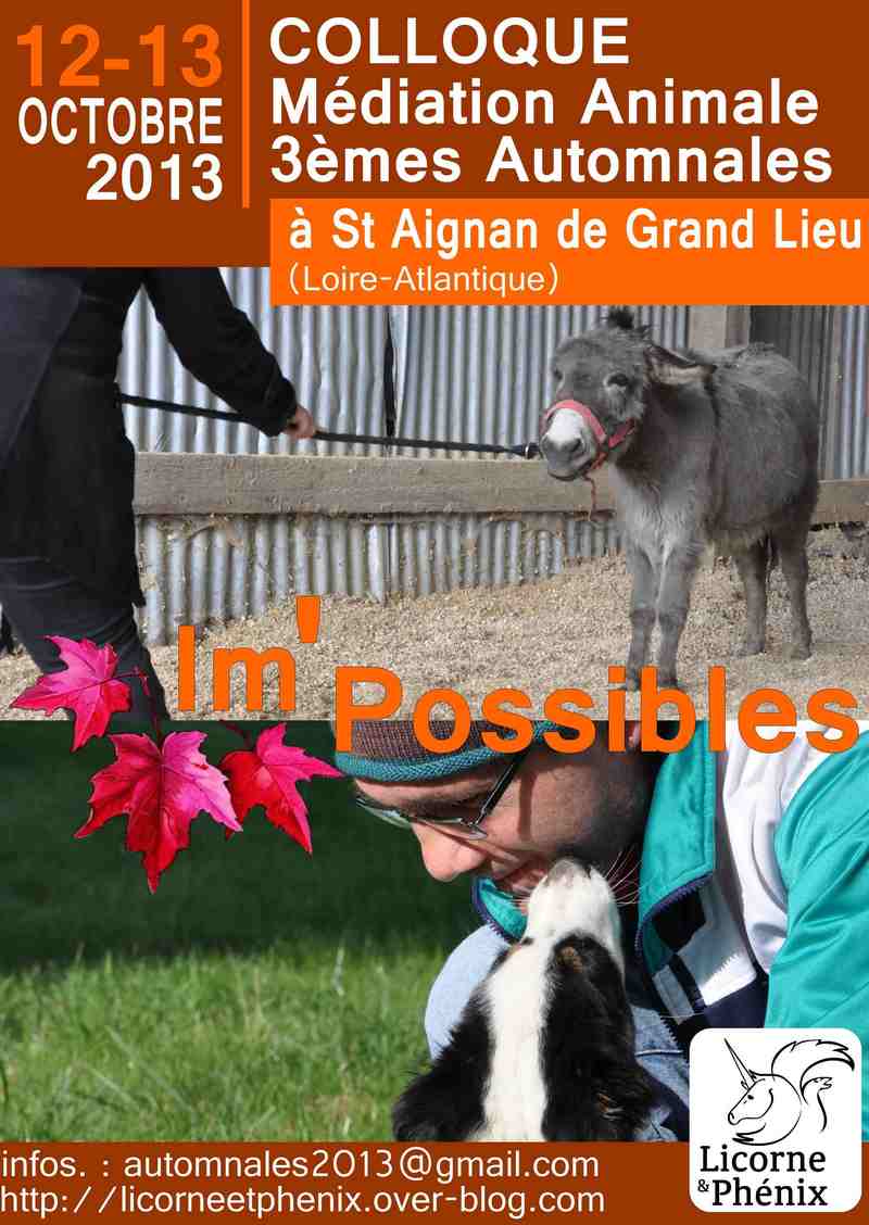 C’est lorsque nous sommes confrontés à une situation difficile que nous apprenons le plus que les situations difficiles peuvent aussi ouvrir à des « possibles » . L’objectif de ces journées sera de cerner les limites de la pratique en médiation animale, les analyser, pour ensuite les développer en un appui constructif. Des intervenants en médiation animale viendront vous présenter leur histoire, leurs im’possibles rencontrés dans leur pratique, comment ils les ont dépassés ou simplement acceptés. Viendra ensuite le temps de réfléchir ensemble sur les im’possibles avec la participation d’intervenants qualifiés du côté de l’humain et de l’animal. Ils nous apporteront leurs outils, leurs connaissances, leurs réflexions, leurs solutions concrètes pour mieux appréhender les limites de la médiation animale dans le respect des 3 protagonistes : l’animal, le bénéficiaire et l’intervenant.