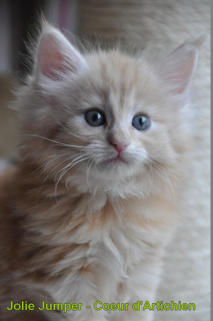 Jolie Jumper est un chatte des Forets Norvégiennes. L’élevage a été sélectionné avec rigueur par Aurore Chartier éthologue de formation initiale, et diplômée du DU RAMA . Elle a ensuite sélectionnée un individu parmi une ribambelle de chatons.