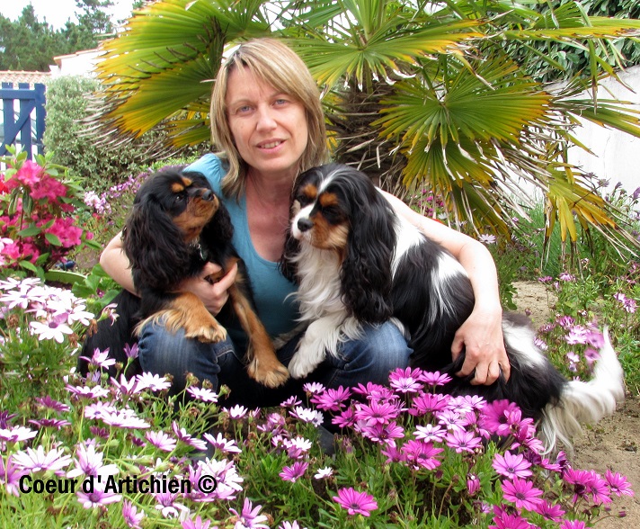 Mais alors ? Une vieille obsession me taraude : j’aimerais tant élargir mon champ professionnel, tout en travaillant avec mes deux jeunes Cavaliers King Charles. Leur donner une vie bien remplie, où se conjuguent partenariat de travail et loisirs en famille. Un heureux hasard ? Aurélie Vincenneux fait une démonstration avec son chien. LA MEDIATION ANIMALE, mon vieux rêve a donc un nom ! Quelques mois plus tard, je m’inscris à la formation CLEMA à Nantes. Je postule à Coeur d’Artichien et je suis embauchée à temps partiel dans la foulée. Pour moi, ce métier ne s’improvise pas. Aussi, je m’appuie sur mon expérience d’éducatrice pour teinter et enrichir mes séances de médiation animale.