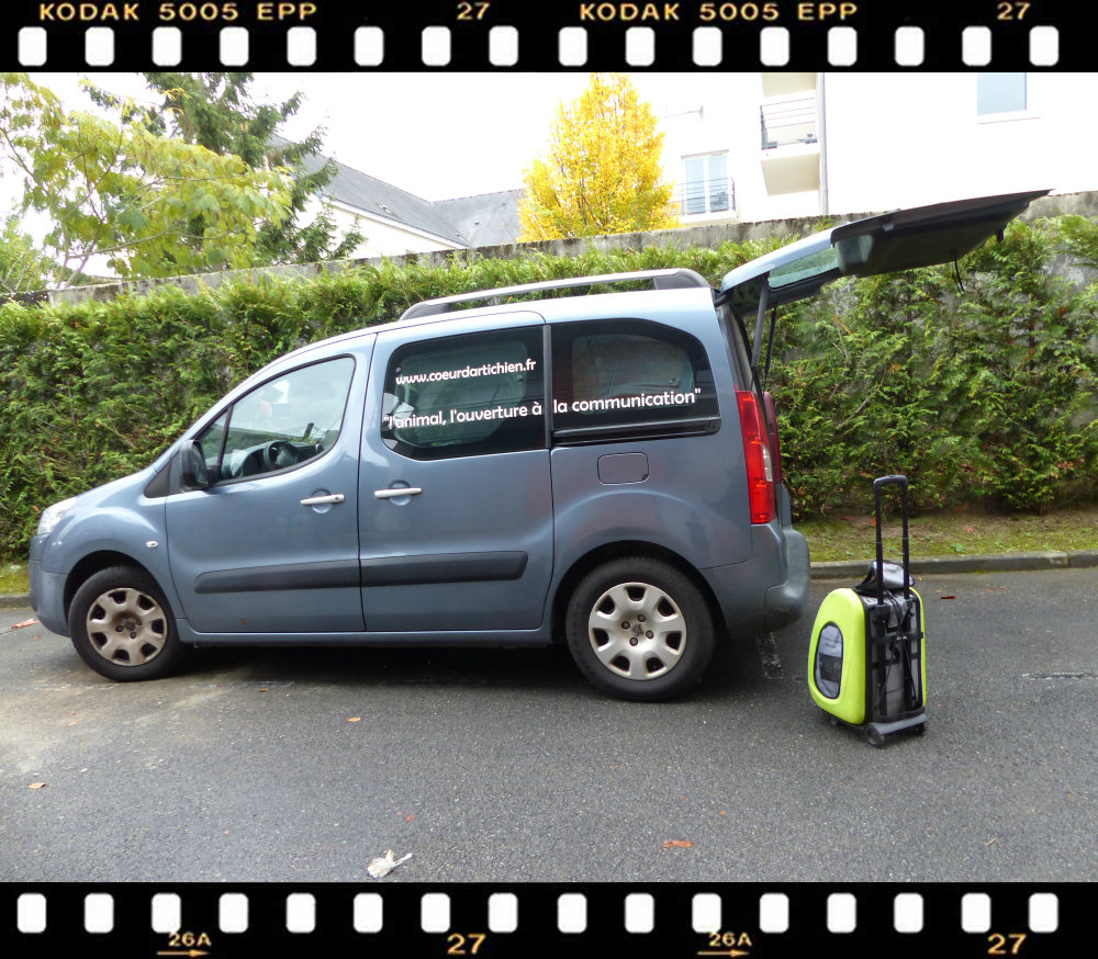 17h Retour à la voiture. Jolie en a marre, et veut rentrer chez elle. Elle miaule dans sa caisse de transport. En maîtresse indigne j’ai oublié de prendre sa litière en partant ce midi. Je décide donc de rentrer à la maison la déposer. Habituellement sa litière est dans la voiture, elle reste en liberté dans la voiture, pendant que je parts promener Gandhi.