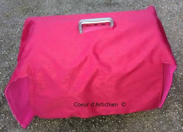 - Il ne vous reste plus qu’à coudre le scratch à l’endroit approprié sur les tissus qui arrivent en bas de la porte et coller l’autre morceau de scratch en dessous de la porte de la caisse sur le plastique.